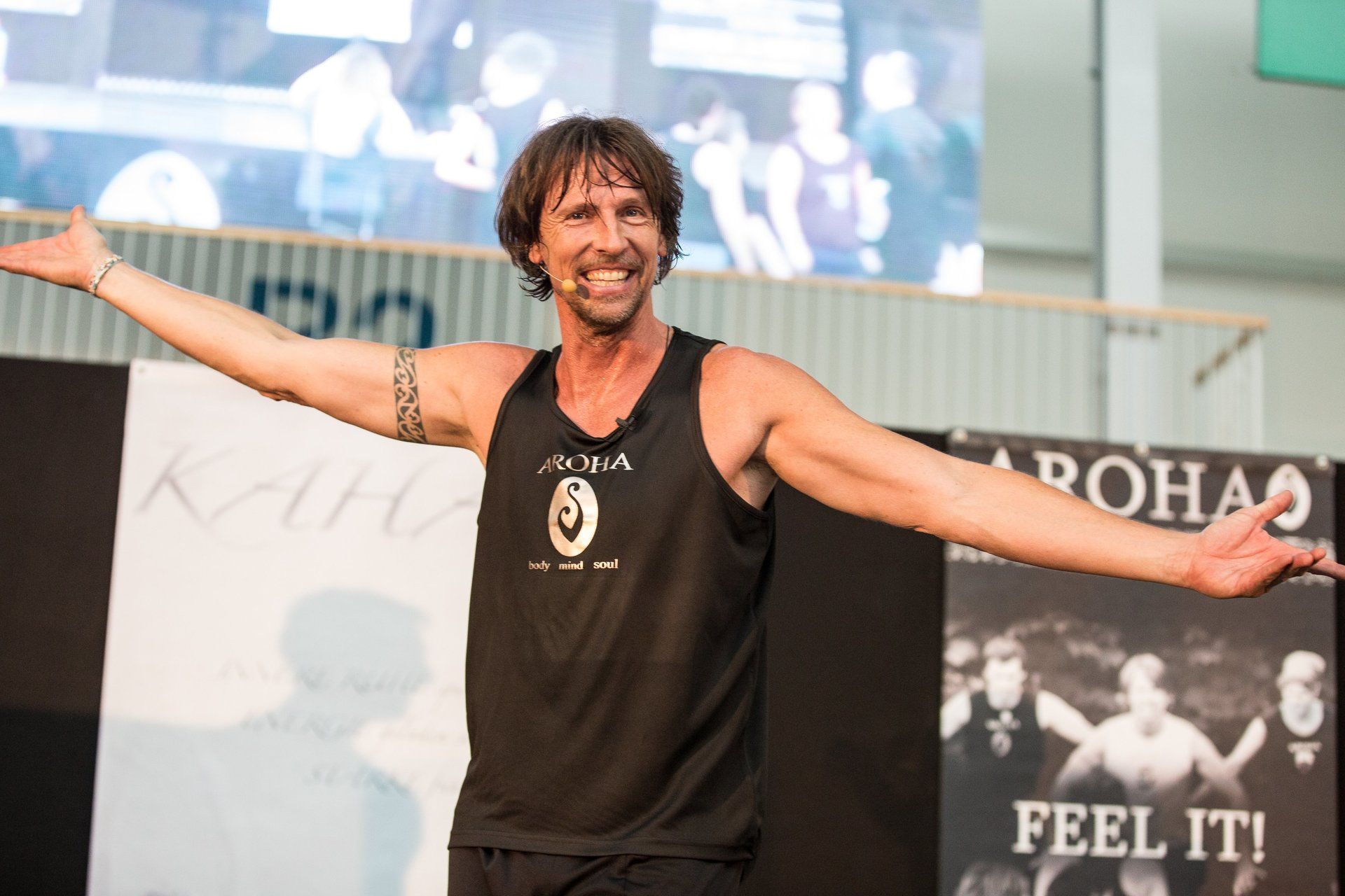 AROHA ist ein Ausdauertraining im 3/4 Takt mit einfachen Arm- und Beinbewegungen, die verborgene Energien freisetzen und der Seele ein Wohlbefinden bereiten. AROHA festigt Gesäß, Oberschenkel, Bauch und führt zu innerer Ausgeglichenheit. Inspiriert vom HAKA, Kung Fu und Taiji.